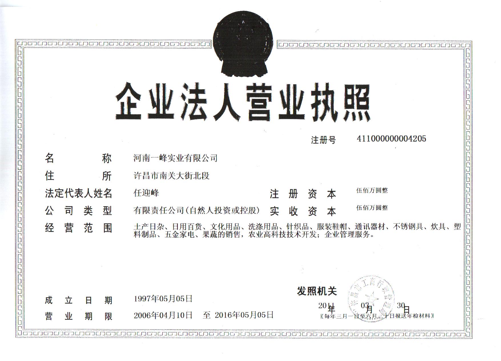 在企业发展的同时,一峰人本着“为顾客提供方便,为客户创造价值,为员工造就机会,为社会作出贡献”的企业宗旨,积极融入当地两个文明建设当中。几年来,公司在缓解就业压力、繁荣市场、支持国家经济建设等方面作出了突出贡献,受到各级政府部门的高度评价。公司先后被授予“合法权益保护单位”、“河南省青年创业基地”、“中国质量信誉保证企业”、“中国质量信誉服务AAA级企业”、“中国诚信经营企业”等荣誉称号。公司董事长任迎峰也先后荣获“河南青年兴业领头人”、“河南省优秀改革新闻人物”、“第三届全国优秀青年兴业领头人”、“新世纪中国改革百名优秀人物”等荣誉称号。