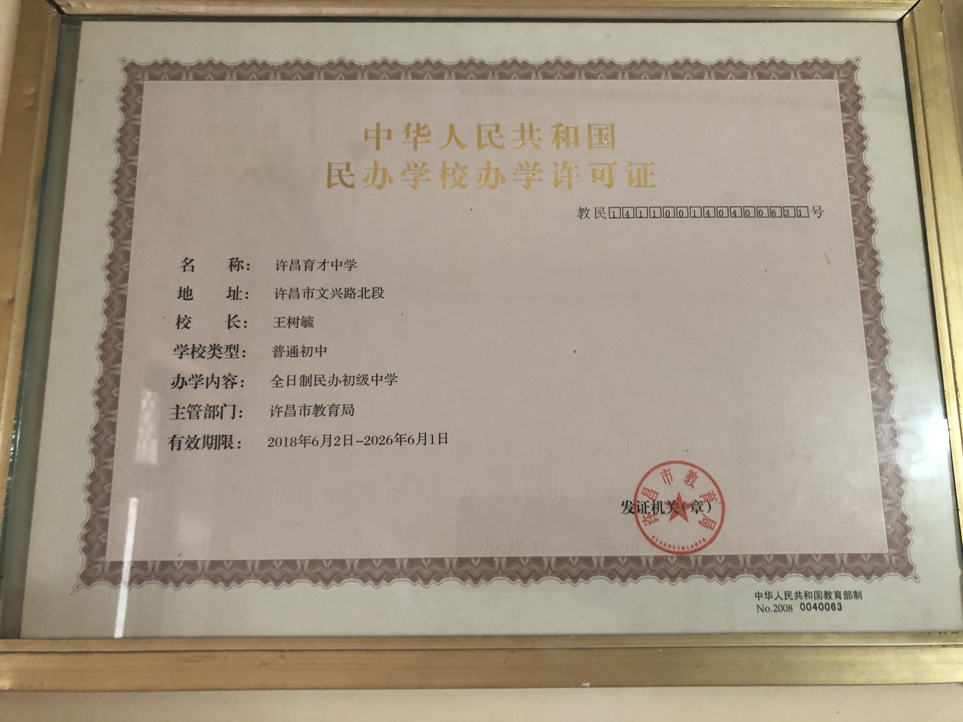许昌育才中学是河南省教育厅命名的社会力量办学先进单位,许昌市教育局命名的社会力量办学优秀学校,河南省民办教育协会命名的示范学校,许昌市教育局命名的文明学校。