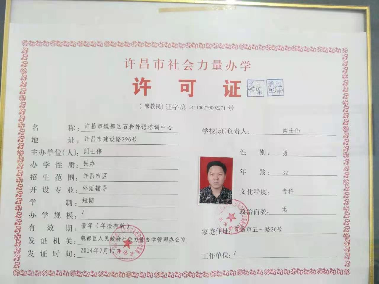 许昌石岩外语培训学校(简称:石岩外语)创办于2008年,13年根植许昌市魏都中心区春秋广场一方宝地沃土,外树形象,苦练内功,教学业务始终精准定位,专注青年人多语种教育培训领域,提供卓有成效、富于竞争力的解决方案,旨在为青少年、上班族/白领、宝妈、出国/旅游者、自由职业、零基础、雅思托福,专升本英语学生提供一站式终身学习和全球世界观再教育的教育社交服务平台;沉浸式教育模式, 全部课程设置注重科学性,实用性和突破性。任何一个年龄段与阶层、不同英语水平、不同需求的外语学习者都可以在这里找到适合自己的课程,并真正摆脱“中国式外语”的尴尬局面,打破语言沟通障碍,重拾语言学习的信心,实现最美好的职业生涯和最绚丽的人生体验。