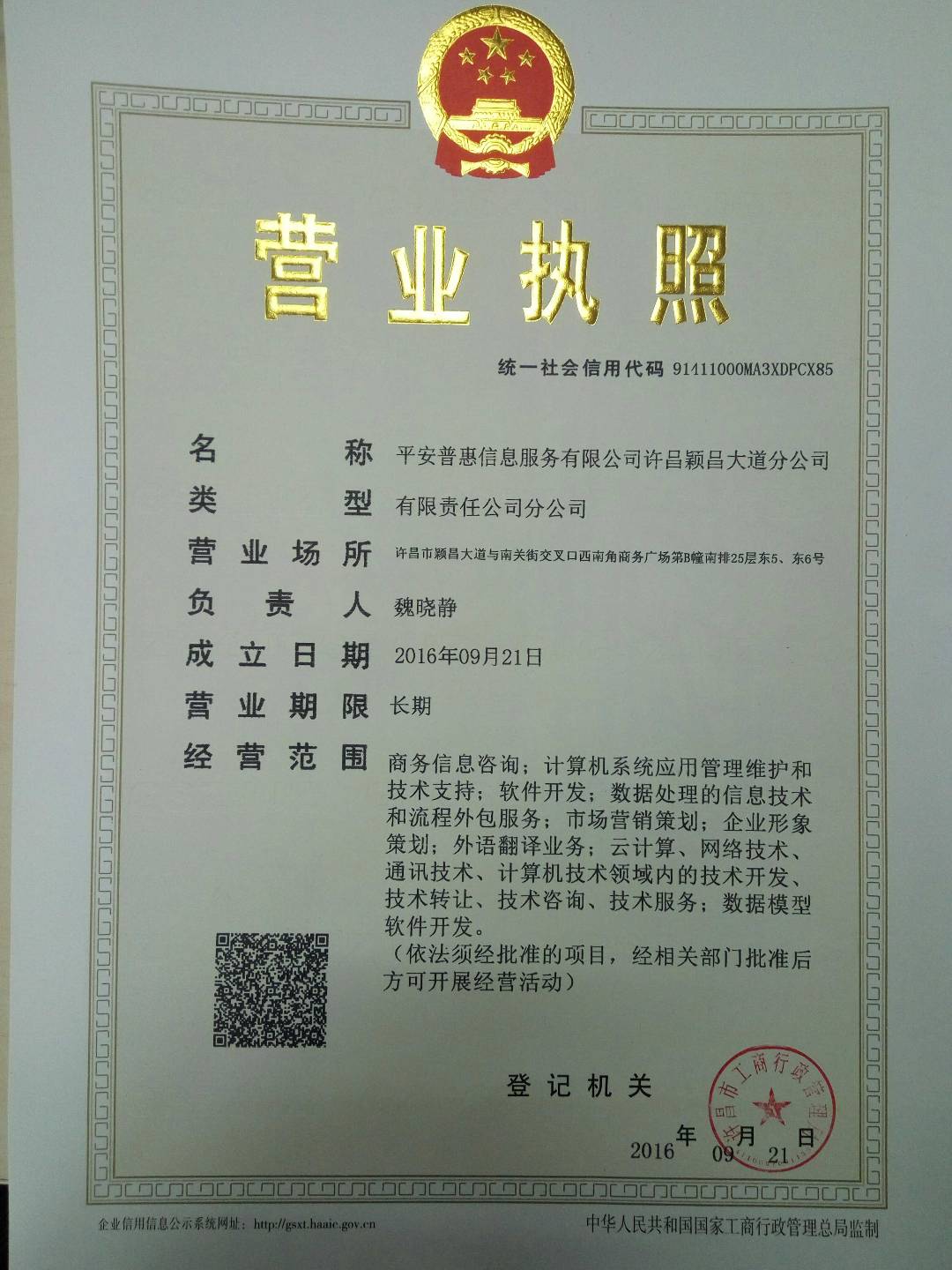 平安普惠信息服务有限公司许昌颖昌大道分公司