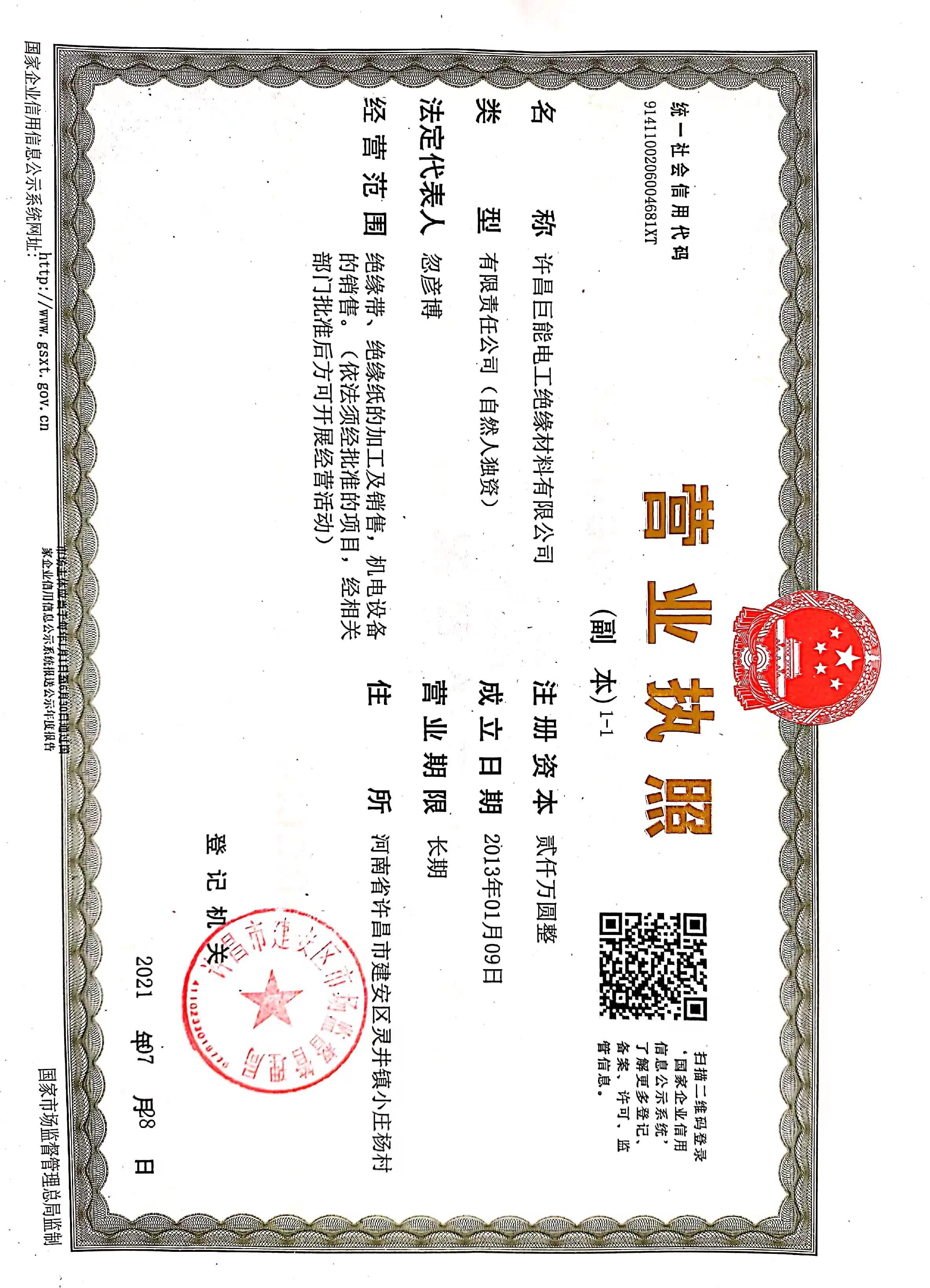 巨能电工创建于2004年,现占地面积10000多平方米,建筑面积5000多平方米,主营:年产600吨柔软复合材料;年产100吨浸渍材料;年产100吨菱格上胶售纸;年产1000万米聚酯热缩带、电工棉布带、玻璃纤维带;年产1000万米玻璃纤维套管;以及其他电工绝缘材料。现有四个现代化生产车间,已通过1S090001 质量体系论证,是河南省计量合格单位。本公司生产的柔软复合材料具有耐热性能和介电性能,作为B/F/H级绝缘材料已广泛应用与电机、变压器、互感器以及其他各种耐热电工电子设备中。一直以来,我公司秉承着对社会负责,对自己负责,对企业负责,对员工负责,对客户负责的五大责任,服务至上、团队合作、拥抱变化、诚信、激情、敬业的六大价值观,赢得了国内外客户众多好评。本公司将以过硬的质量、合适的价格为广大新老客户提供满意周到的服务,同时欢迎您到我公司进行考察。