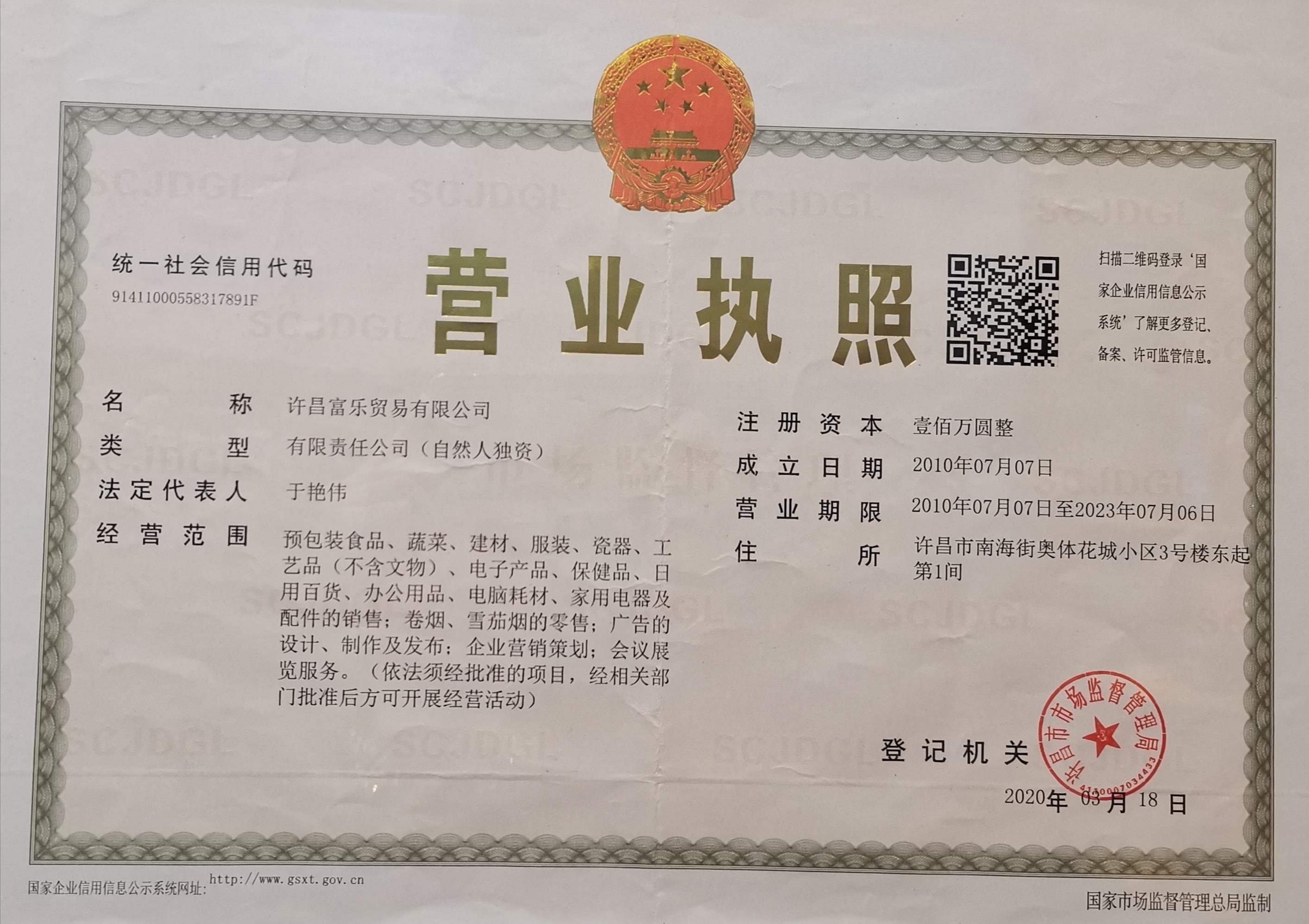 许昌富乐贸易有限公司成立于2010年7月,位于许昌市学院路与南海街交叉口向东131米路北,公司致力于打造许昌市名酒中的“百年老店”。 目前主营:贵州茅台酒、2.5L贵州大曲生肖酒、500ml茅台王子生肖酒、茅台王子酒(珍品)、茅台系列红酒、悠蜜蓝莓精酿酒。公司始终坚持诚信经营的方针,牢记“真心优选,诚心服务”的企业使命,恪守“以人为本,顾客至上”的企业经营理念,全心全意为许昌人民服务。