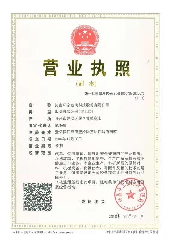 河南环宇玻璃科技股份有限公司位于许昌市建安区蒋李集镇寇庄,是一家行业领先的汽车安全玻璃加工企业,国家级专精特新“小巨人”企业,2015年新三板挂牌上市。公司自成立以来,始终秉持“诚信负责、创新高效、优质廉价、互利共赢”的经营理念,着力打造精致化环宇。产品定位于中高端,主要产品有汽车用钢化玻璃、夹层玻璃、铁道车辆玻璃、中空内置窗、逃生窗玻璃等。主要配套客户有郑州宇通、三一集团、中国一拖、潍柴雷沃、山东临工、徐工集团、柳工集团、吉利客车、道依茨、纽荷兰等企业。产品远销欧美、非洲、东南亚等10多个国家和地区。