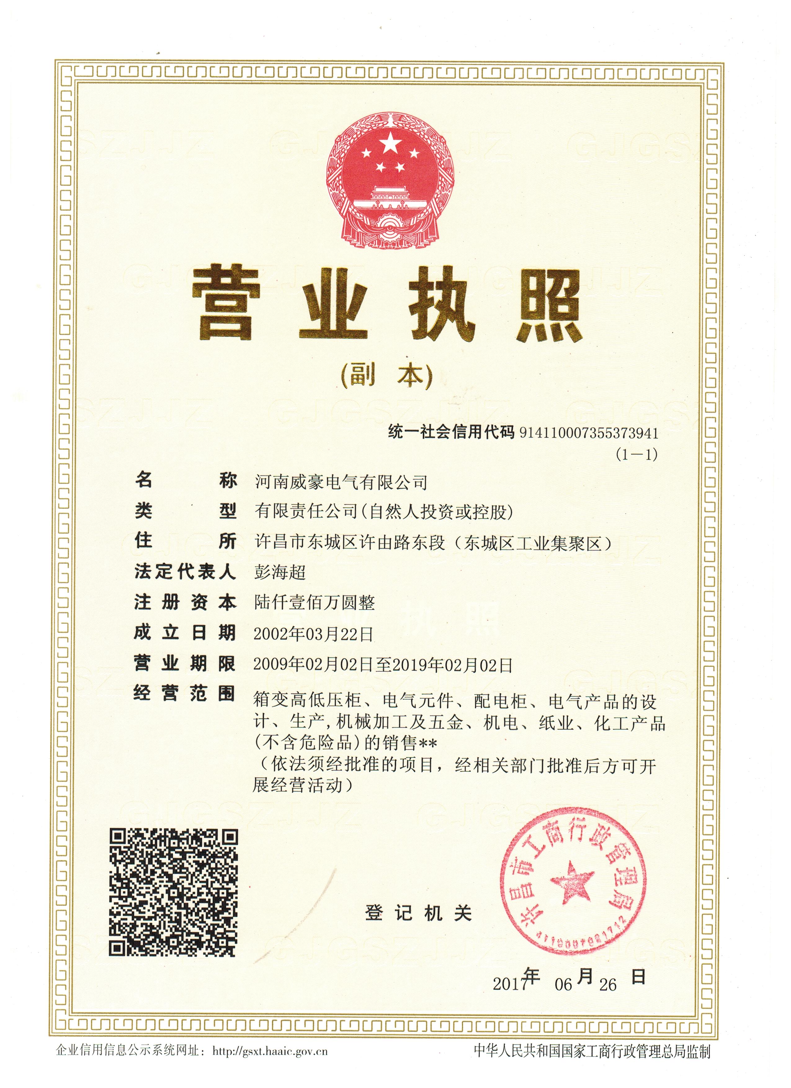 河南威豪电气有限公司是省一级企业,二级计量单位,河南省高科技企业,是原国家机械工业部、电子工业部、电力工业部、煤炭工业部定点生产企业。